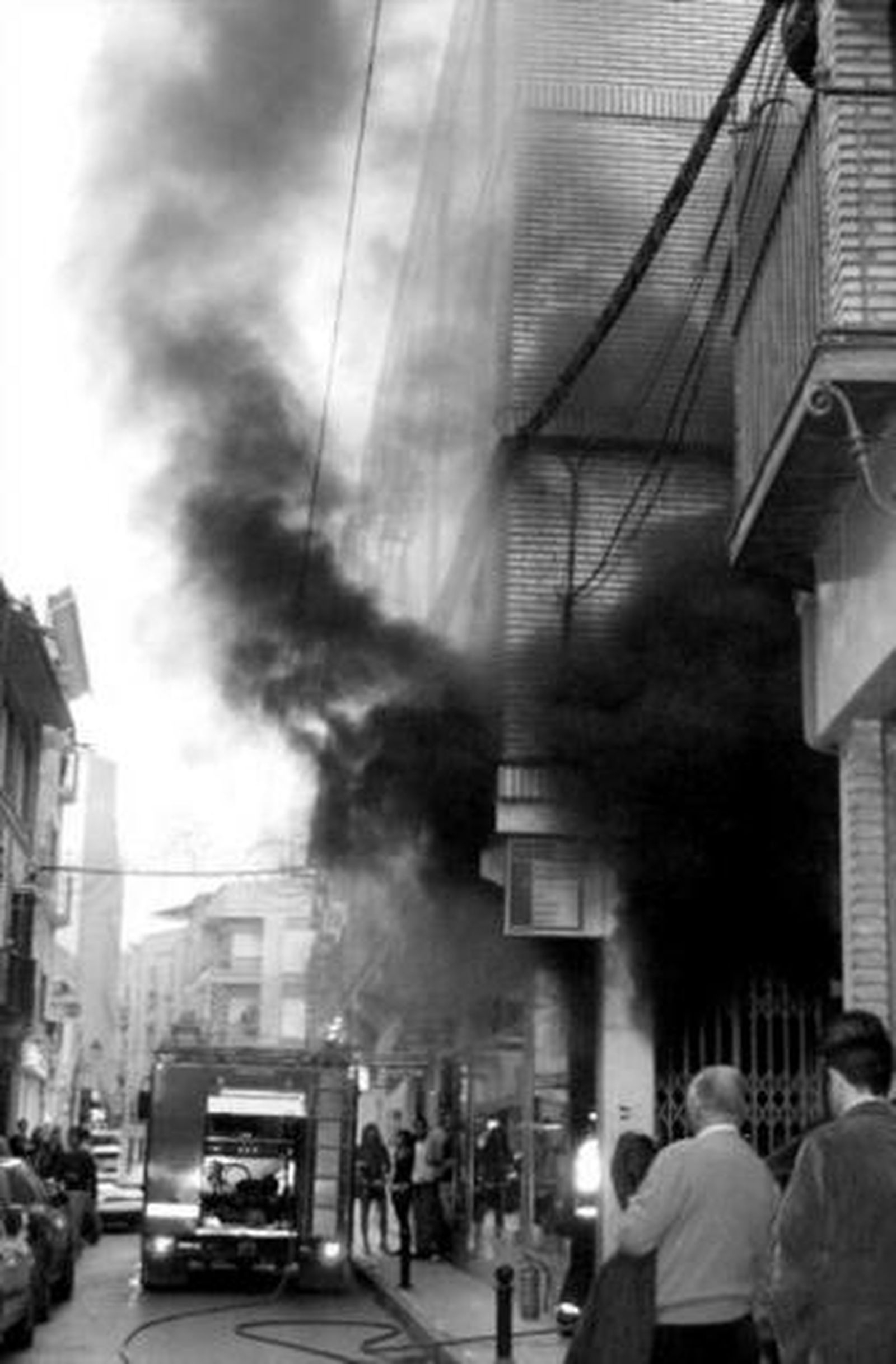 Casi de inmediato, dos camiones del Parque Comarcal de Bomberos dependiente de la Diputación y con sede en Lucena acudieron a la zona, mientras que varios agentes de la Policía Local y Nacional cortaron el tráfico de vehículos y peatones. El humo, que se divisaba desde distintos puntos de la ciudad, comenzó a ascender, afectando a los pisos ubicados encima del establecimiento, de ahí que los efectivos decidieran desalojar el edificio ante el riesgo de intoxicaciones. Esta operación se realizó con normalidad y sin ninguna incidencia destacable, si bien los vecinos tuvieron que estar casi una hora fuera de sus casas, hasta que éstas quedaron a salvo de la negra humareda que invadió una parte de la calle Montenegro de la ciudad lucentina.