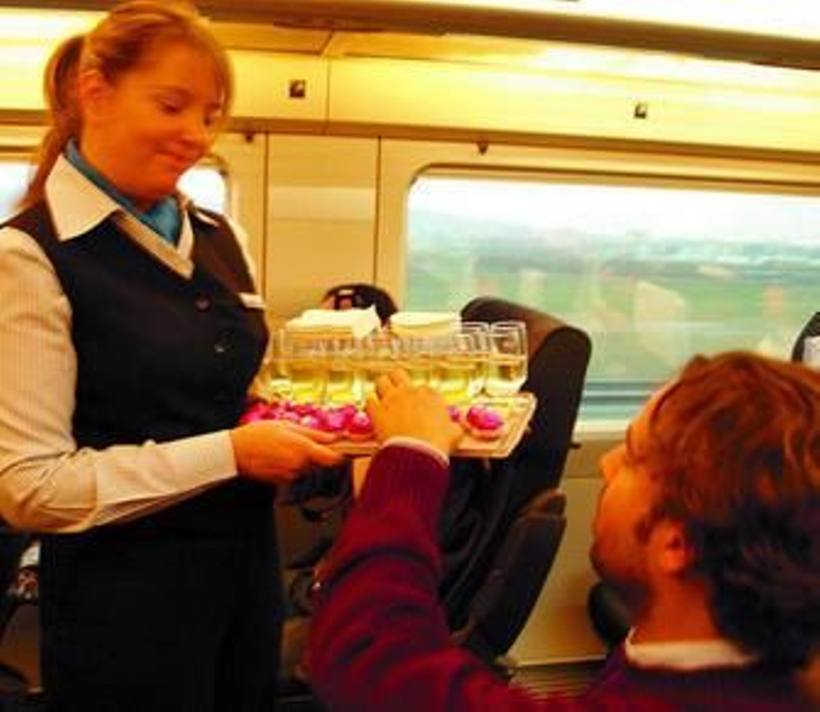 A las 10:30 arrancaba el tren. Fuera, donde estuvo toda la noche lloviendo de forma torrencial, la temperatura era de 12 grados. Dentro, "hace más calor que en Córdoba en julio", bromeaba un pasajero andaluz, abonado al chiste fácil. Pero Renfe cuenta uno mejor. A esas horas de la mañana, unas sonrientes azafatas repartían cava para que los pocos (y atrevidos viajeros) que cogen una copa brindaran por este viaje inaugural del by-pass. Tiene su gracia.