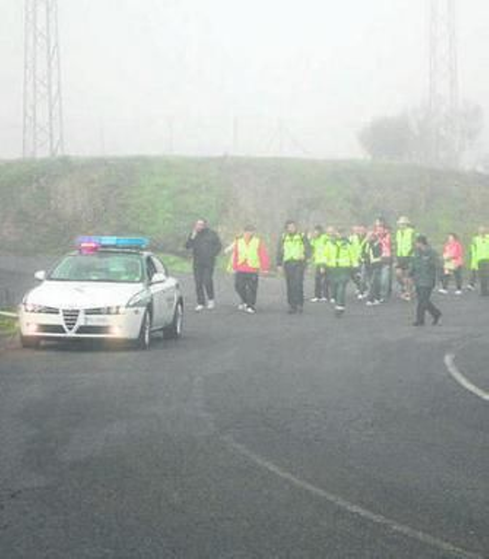 La mañana estuvo marcada por la climatología, ya que una espesa niebla apenas permitió recorrer los algo más de dos kilómetros que se separan el casco urbano del acceso a la N-432 (Badajoz-Córdoba-Granada). En este punto, los agentes de la Guardia Civil mantuvieron una reunión con la alcaldesa belmezana para alertarla del peligro que suponía para las personas incorporarse a la carretera, ya que la visibilidad era muy reducida. Los agentes plantearon la posibilidad de recorrer el tramo que va desde Belmez hasta Villanueva del Rey por la antigua nacional, pero los vecinos decidieron no alterar el recorrido y, casi una hora y media después de lo previsto, en torno a las 11:40, se reanudó la marcha.