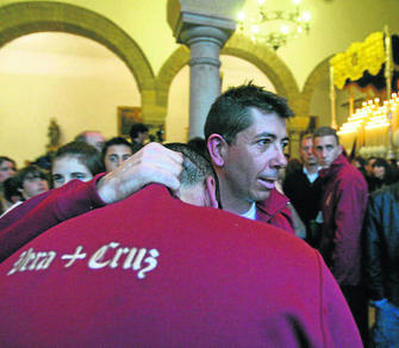 La confirmación corrió como la pólvora sobre la plaza de la Iglesia. No hizo falta que nadie lo comunicara. El simple hecho de ver a un costalero enrollando su faja negra fue suficiente. Abrazos y ojos con lágrimas como respuesta. Pero mejor quedarse bajo resguardo porque hace diez años, según explicaba uno de los fieles, "tuvimos que resguardarnos en la Mezquita-Catedral cuando íbamos de vuelta". "A mi todo esto me da mucha pena", sentencia una joven que espera a que las puertas del templo se abran y comiencen los turnos de vela.