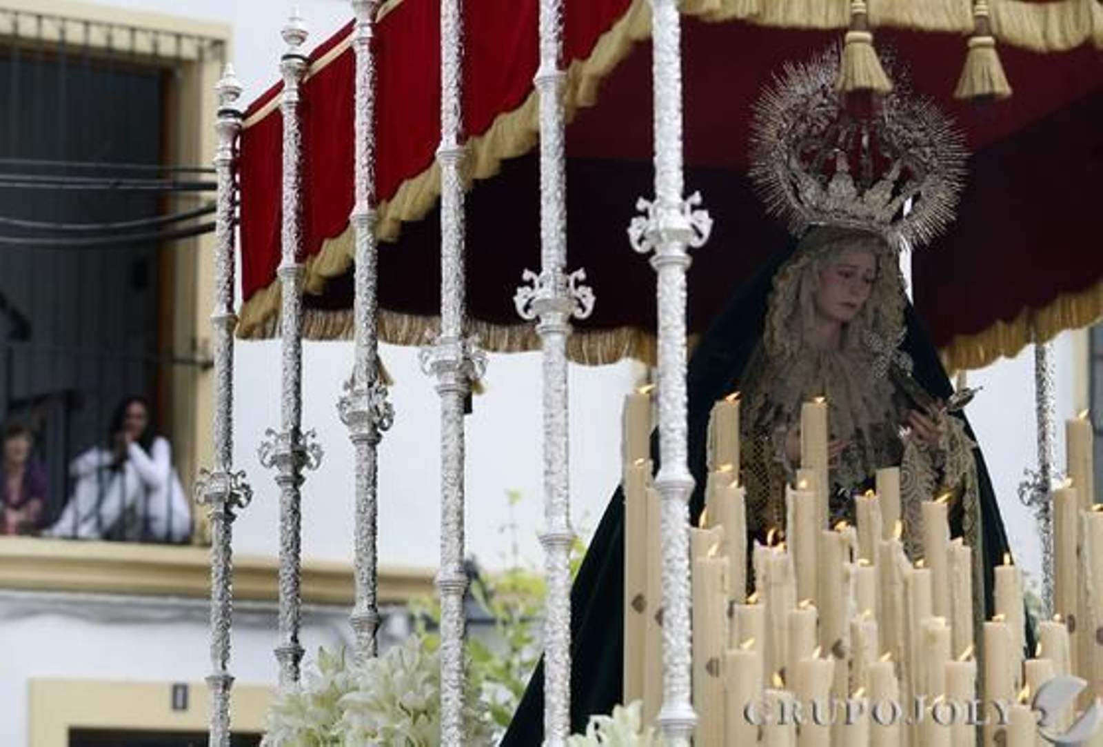El Perdón se adentró así en el recorrido que habría de llevarlo hasta la carrera oficial y sus nazarenos y costaleros comenzaron a sentir bien pronto el pegajoso calor primaveral que a esas horas de la tarde se había instalado en la Judería. Ya en la plaza del Indiano, Ángel de Torres según el nomenclator oficial, el paso de Nuestro Padre Jesús del Perdón ante Anás, la imagen de Romero Zafra que se incorporó a la Semana Santa a mediados de los años 90, se encontró con ese ambiente tan particular que se puede vivir en las inmediaciones de la Mezquita-Catedral en estas fechas. Había allí gentes realmente enteradas de lo que acontecía, pero también ese magma tan curioso en el que se entremezclan turistas sorprendidos con su mapita de la capital doblado y grandes bandadas de muchachos que, en estos felices días vacacionales, comenzaban por estas geografías de la capital su largo peregrinar cofrade que, para muchos, habría de alargarse hasta bien entrada la madrugada. Bullicio sería la palabra que define lo que reinaba, aunque la aparición de la imagen de María Santísima del Rocío y Lágrimas, a la que con tanto amor viste Antonio Villar, hizo el silencio y creó esa magia, ese misterio, que siempre acompaña a un paso. La ciudad se abría así para el Perdón, una hermandad valiente, en su largo peregrinar. Ya estaba bien entrada la noche cuando al fin regresó a su templo. Reinaba, cómo no, la felicidad. Buen trabajo.