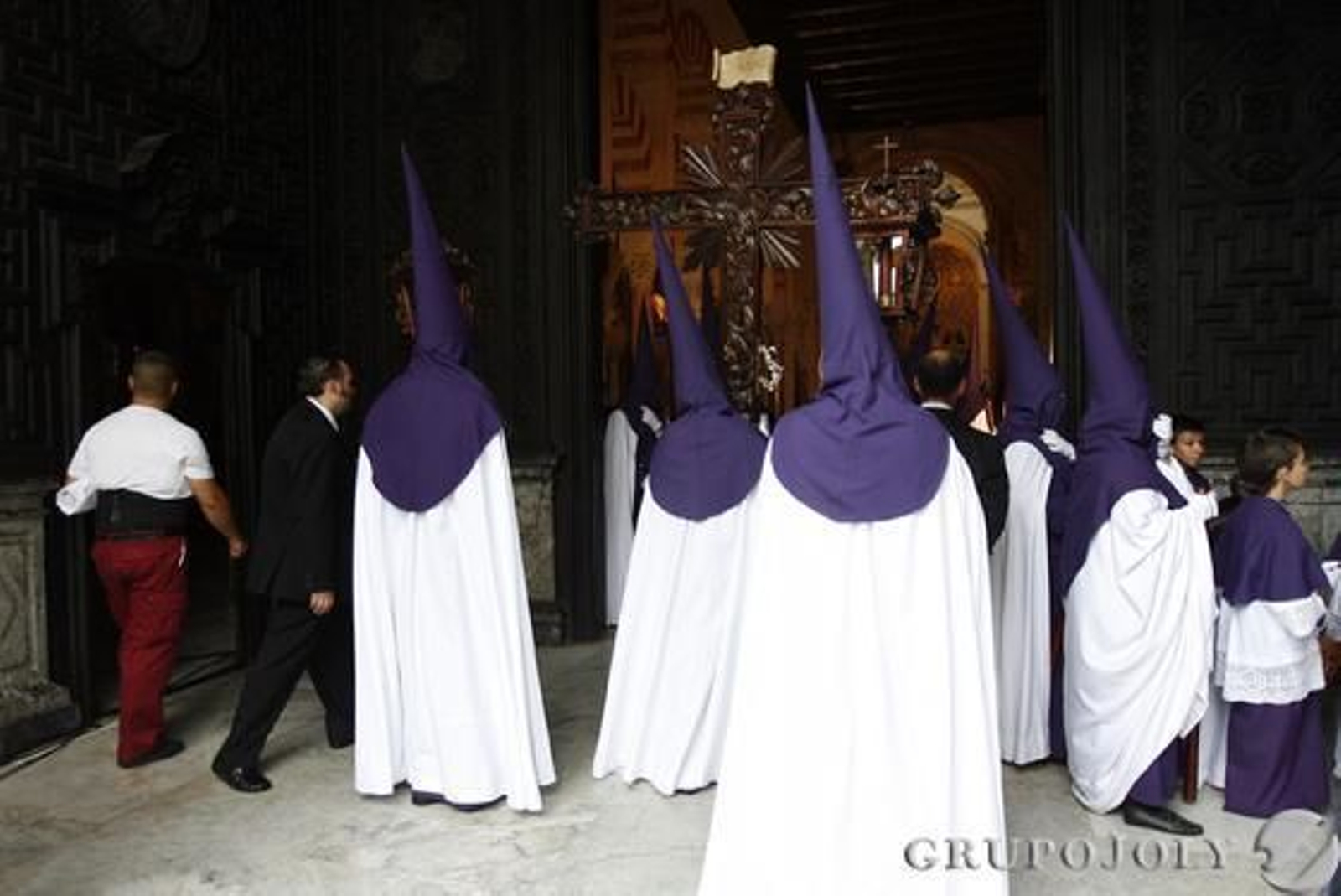 Los de la Agonía habían decidido salir este año desde el primer templo de la Diócesis por dos motivos: primero, hacer estación de penitencia en la Catedral y, segundo, acortar considerablemente el recorrido. Esta novedad, quizá la más importante de la jornada, contó con el refrendo de centenares de personas que desde alrededor de las 16:00 se congregaban en los alrededores del templo, porque todas sus puertas estaban cerradas.