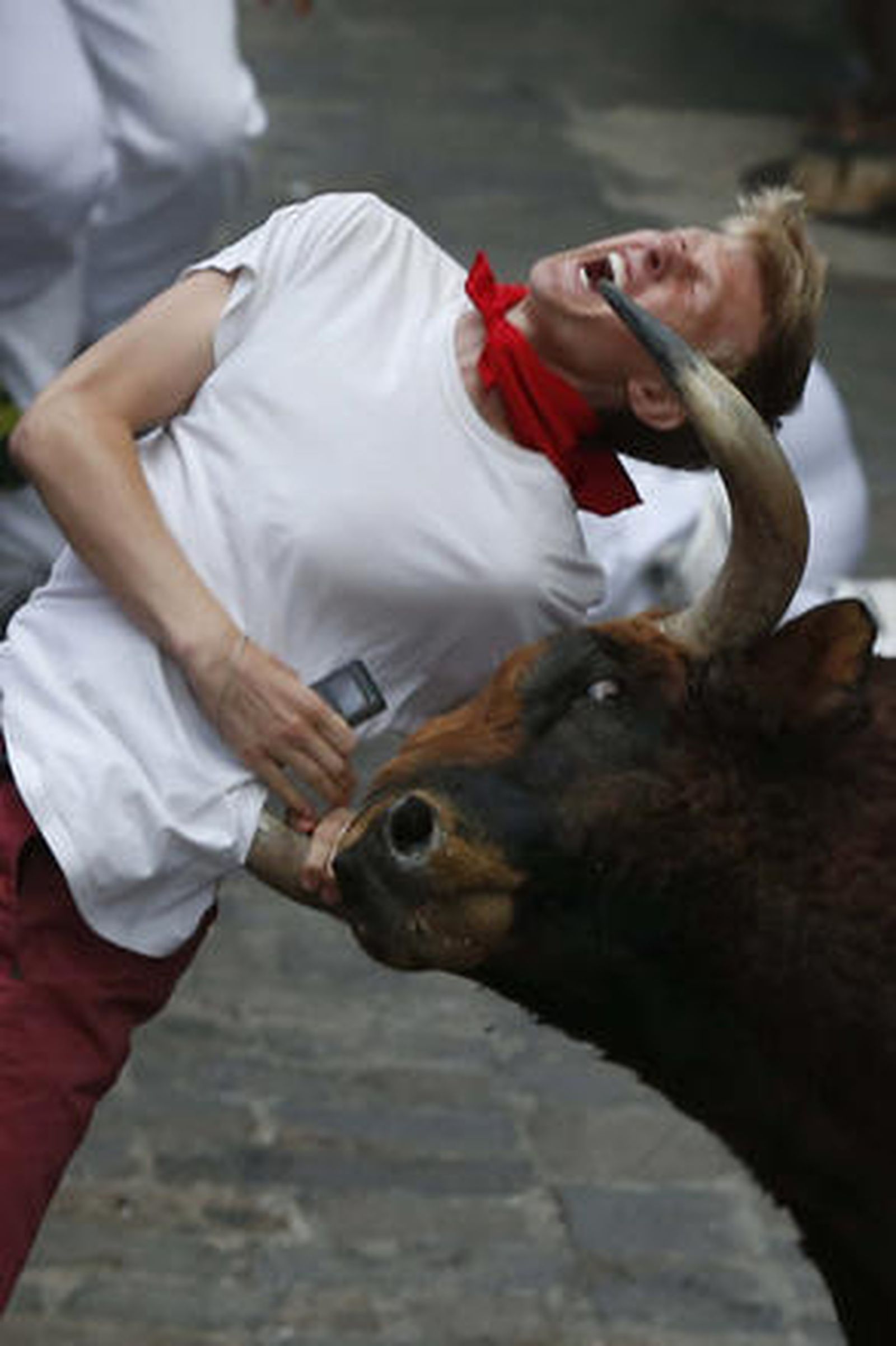 Uno de los bureles quedó suelto y arremetió varias veces contra uno de los corredores, con un total de tres mozos corneados. La carrera es hasta ahora la más larga con casi 5 minutos de duración.