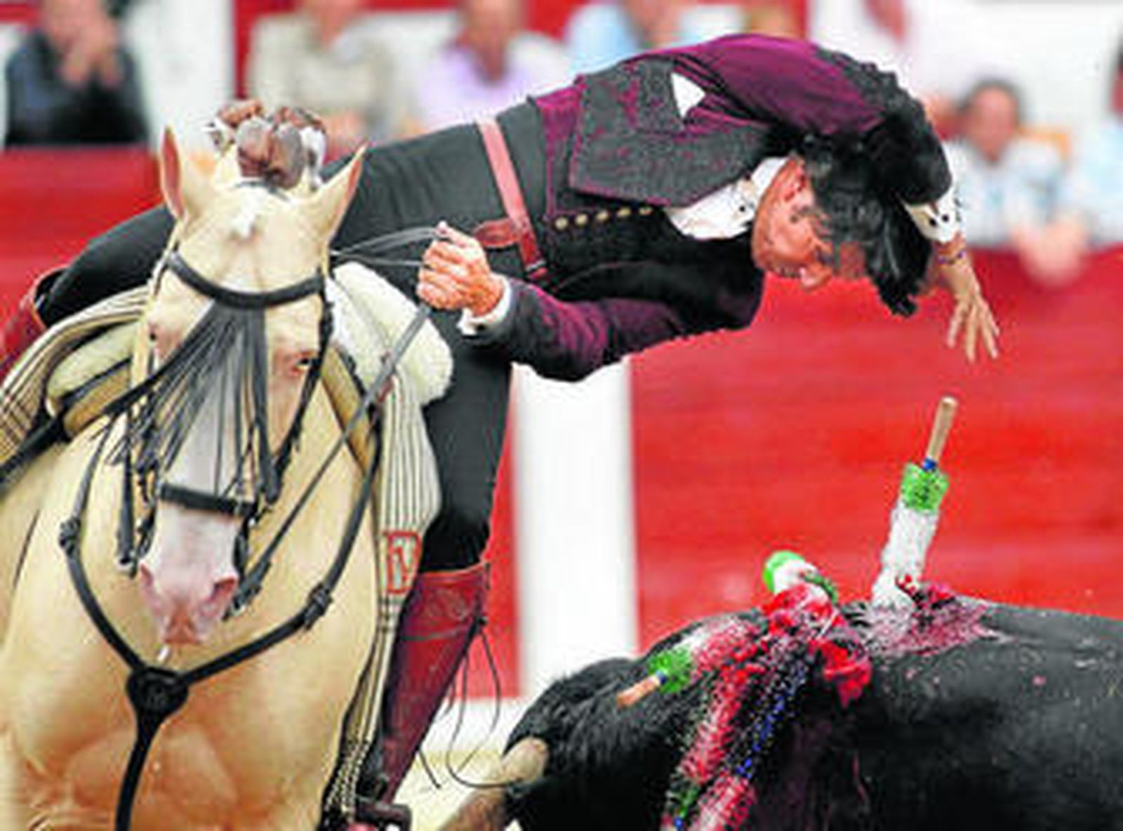 No bajó la intensidad de su actuación Diego Ventura en el cuarto toro del encierro, todo lo contrario, pues en éste toro volvió a brillar el jinete hispanoluso en una labor más rotunda y compacta si cabe que la anterior, en la que hizo las delicias de los tendidos gijoneses con los galopes de salida, banderillas, quiebros y piruetas.